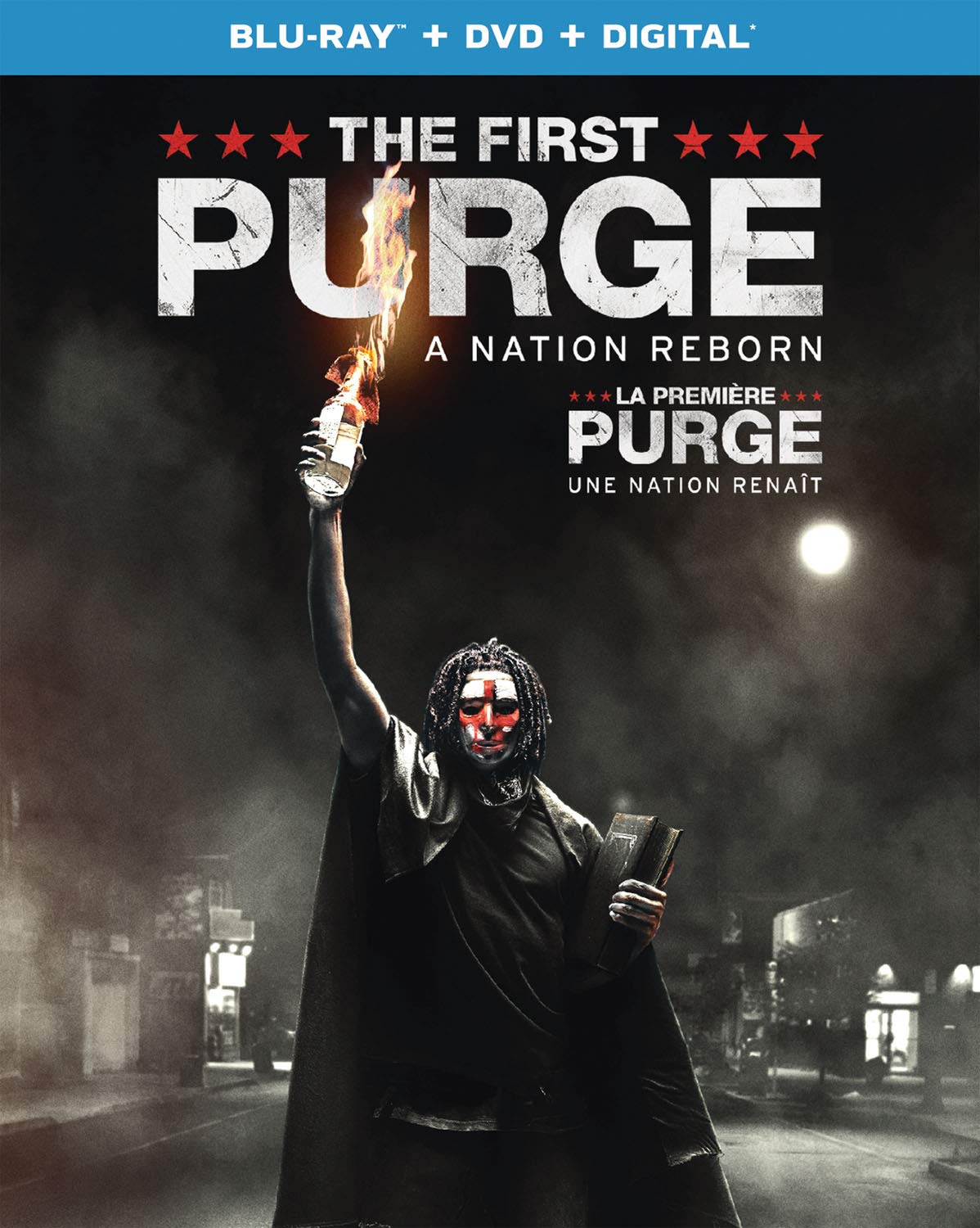 C'est dans une édition deux disques que le film arrive en magasin. On retrouve donc un disque DVD ainsi qu'un disque Blu-ray à l'intérieur d'un boitier standard. La pochette, sous des tons sombres, nous montre un homme qui prend une pause comme la Statue de la Liberté, mais qui a l'air beaucoup moins sympathique que cette dernière. Le menu nous offre l'infographie habituelle des studios Universal avec une image fixe accompagnée d'un extrait musical pour nous mettre dans l'ambiance. Au niveau technique, je note une belle clarté dans l'image, une profondeur adéquate et un bon niveau de noirs. Pour ce qui est de la piste audio, elle rend bien l'ambiance du film avec une immersion totale. La piste est riche, dynamique et utilise les capacités du système. Les dialogues sont audibles du début à la fin et s'intègrent bien avec le reste. En suppléments, on retrouve des scènes supprimées ainsi que trois petits documentaires "A Radical Experiment", "Bringing the Chaos" et "The Masks of The First Purge".